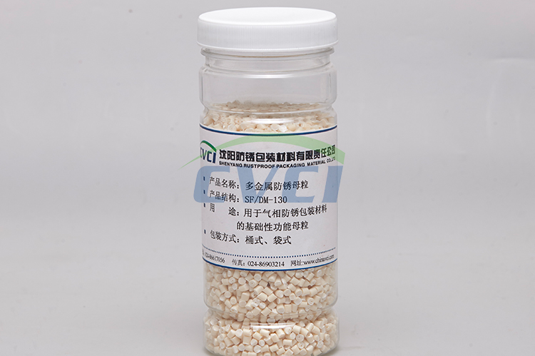 SF/DM-130多金屬用氣相防銹塑料母粒,是一種由聚烯烴樹脂、VCI及其他助劑混合,經擠出生產制得的白色至乳白色防銹塑料母粒,主要用于氣相防銹塑料膜類產品加工。
