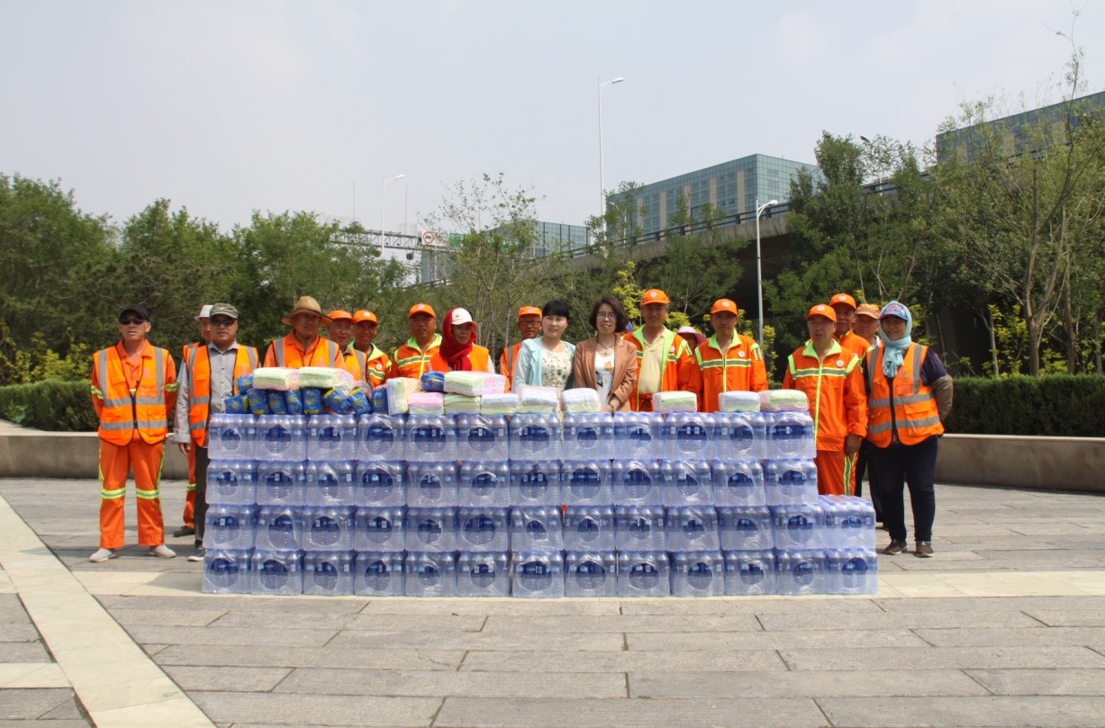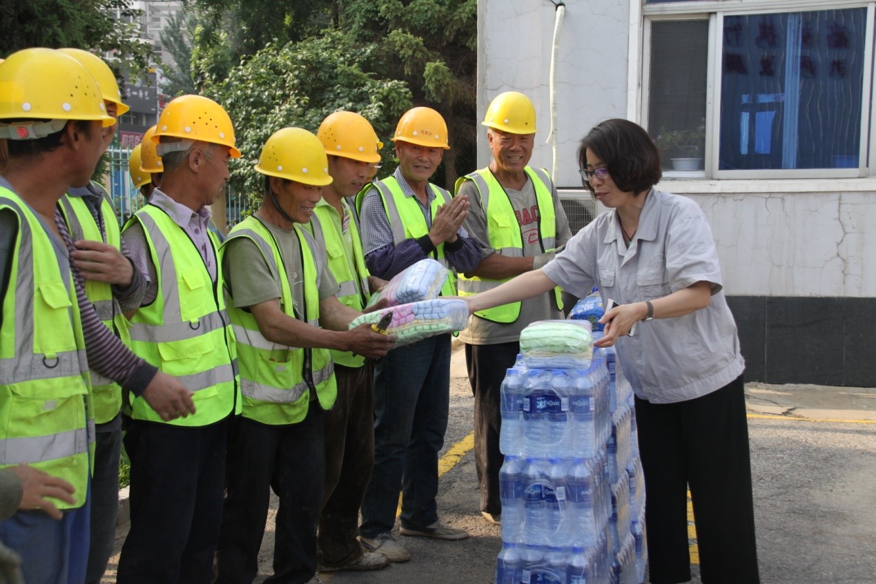 2018年6月12日下午,沈陽防銹向皇姑區環衛及市水務集團一線工作者們進行慰問,并捐贈了一批礦泉水、毛巾和工作手套。沈陽防銹總經理劉艷霞、皇姑區首府城管一所所長周雪梅、副所長白冰、市水務集團施工單位領導共同參加了慰問捐贈活動。